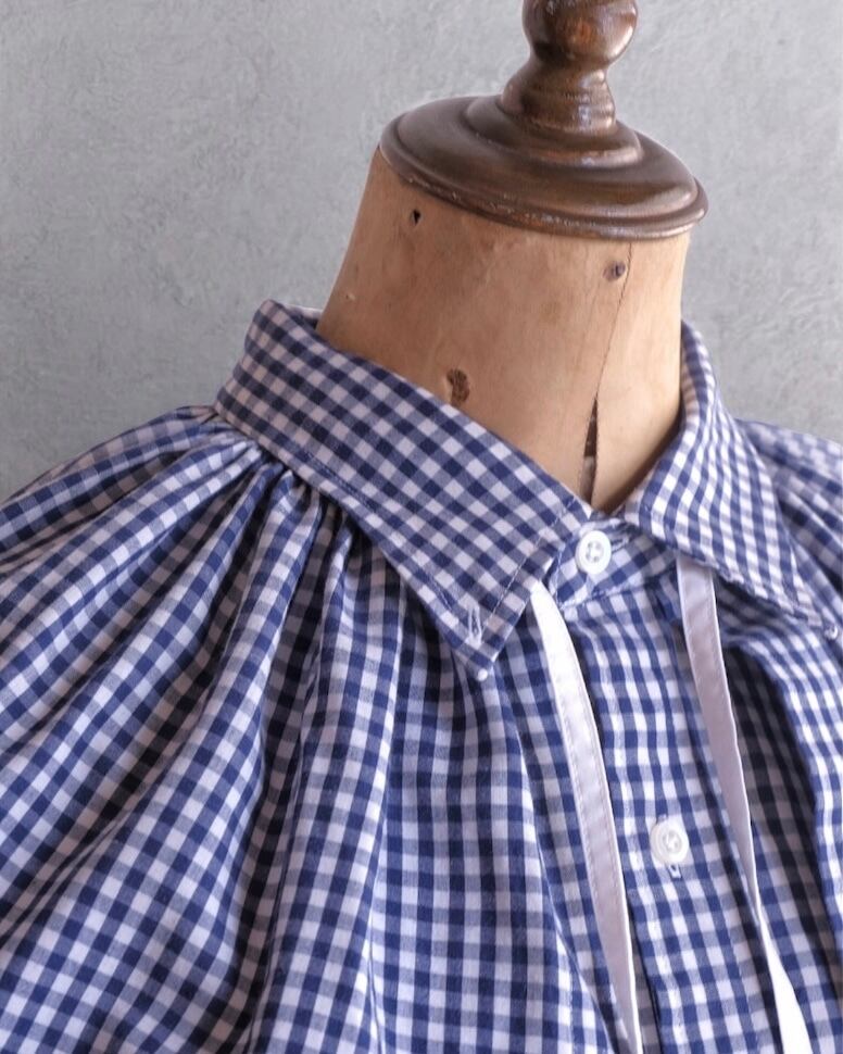 volume-collar remake checkered ribbon blouse