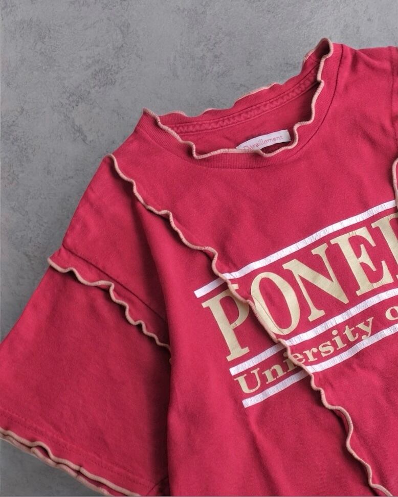 アイボリーのプリントに合わせたベージュのステッチ◎