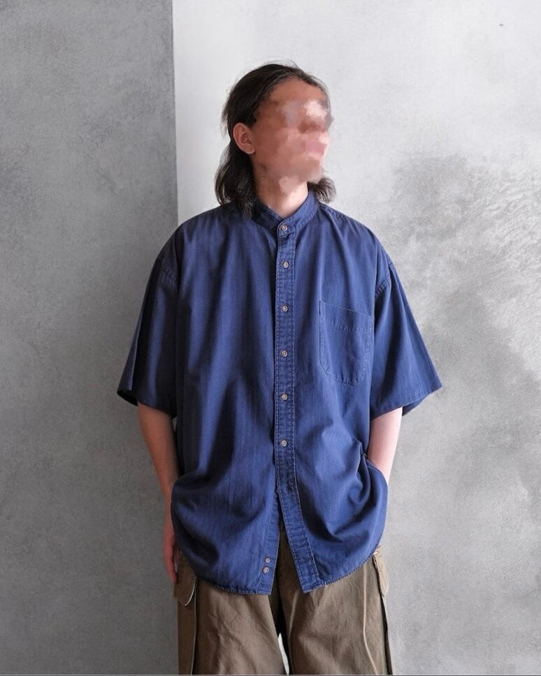 ヘリンボーンツイルが印象的な半袖シャツです。