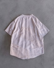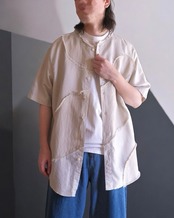 ストライプのリネン生地を切り替えたリメイクシャツ。