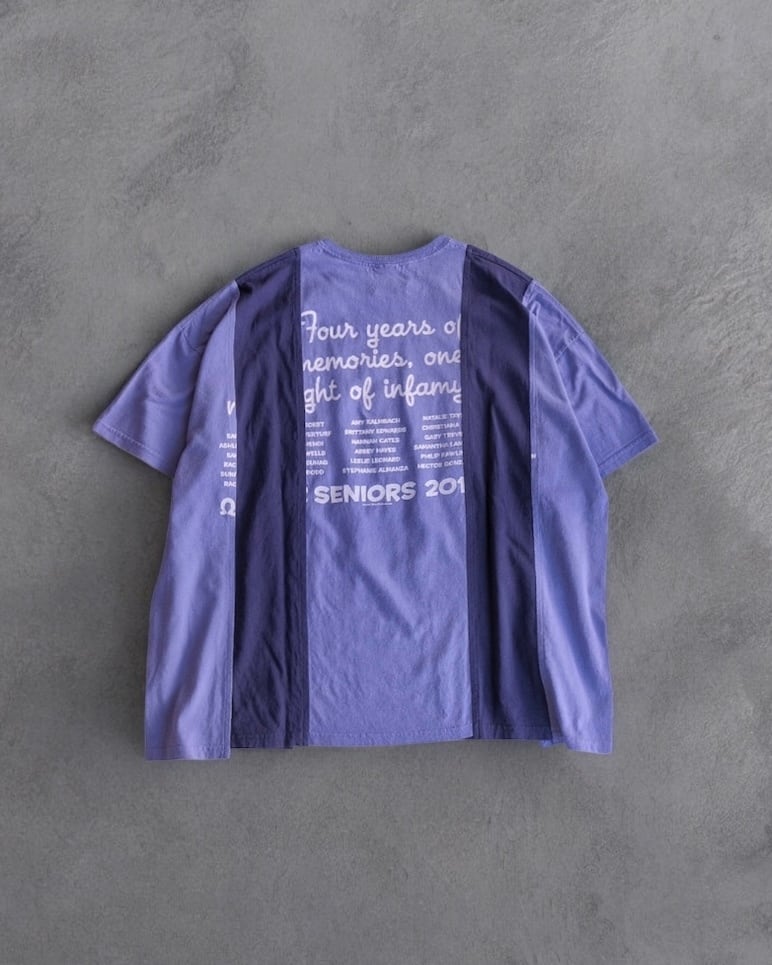 ネイビーのを繋ぎ合わせたリメイクTシャツ。