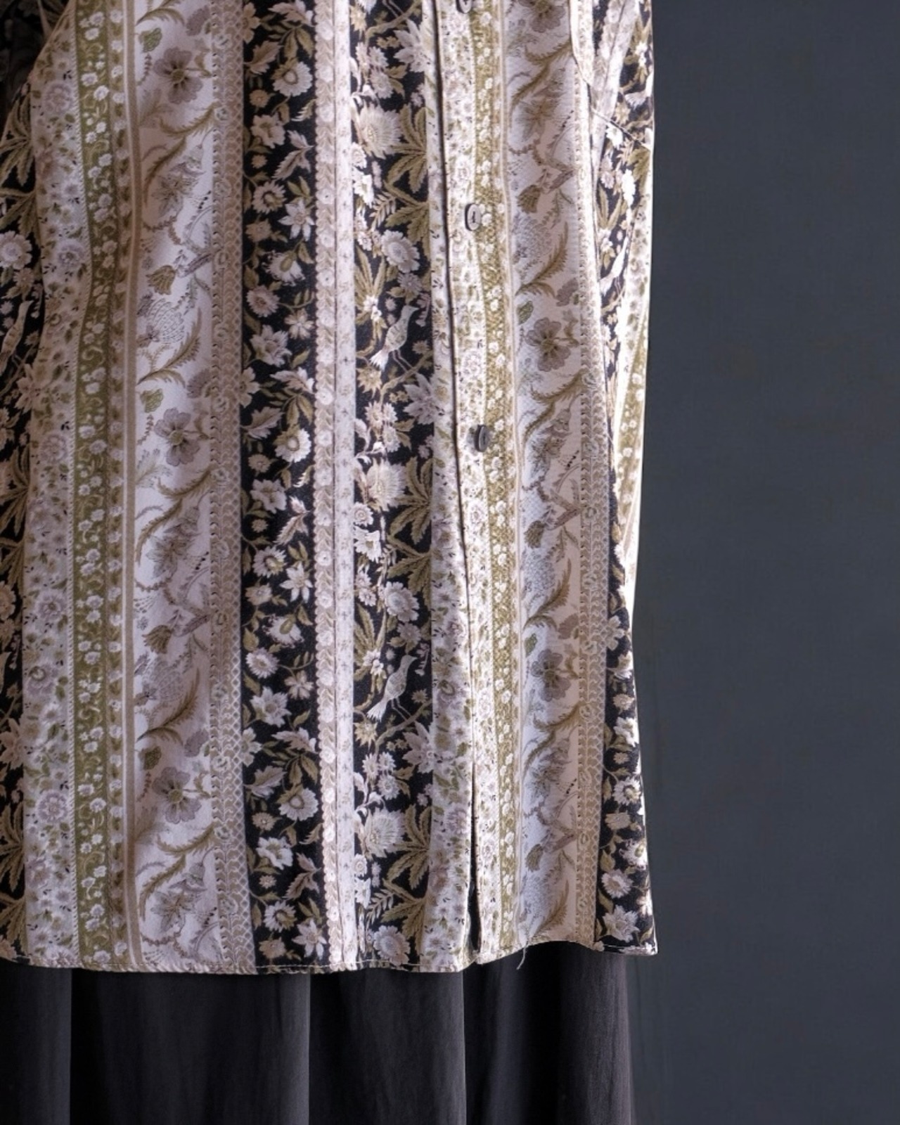 "used" flower pattern × stripe band-collar shirt
