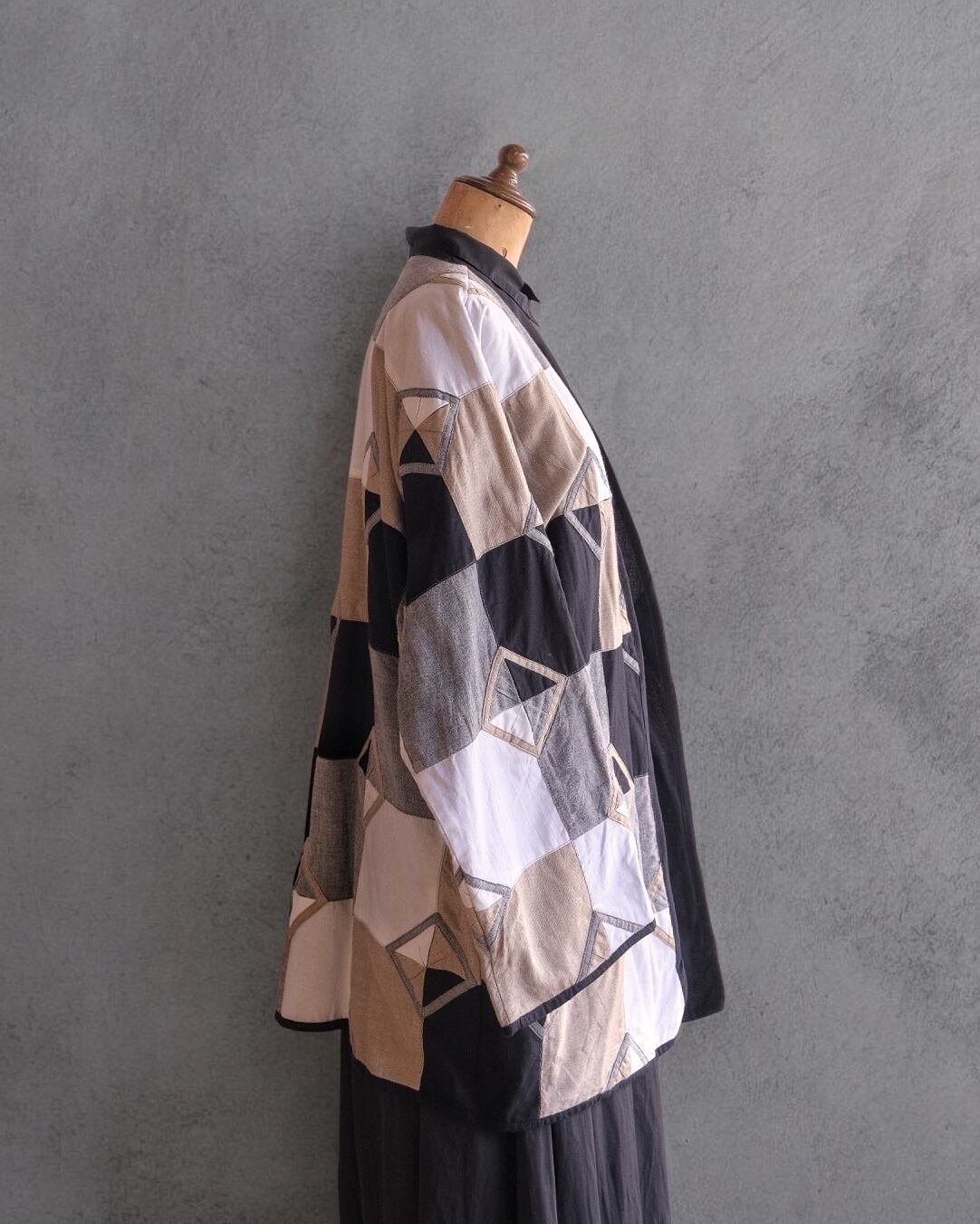 平面的で規律性のあるパッチワークに、