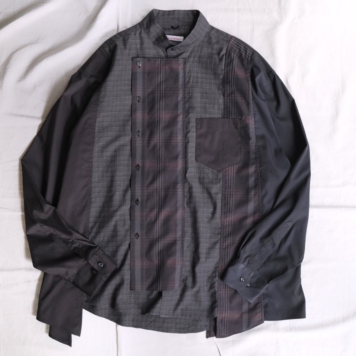 4種類の生地を繋ぎ合わせたリメイクシャツ。