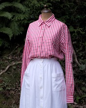 赤のギンガムチェックが可愛いチロリアンシャツ。