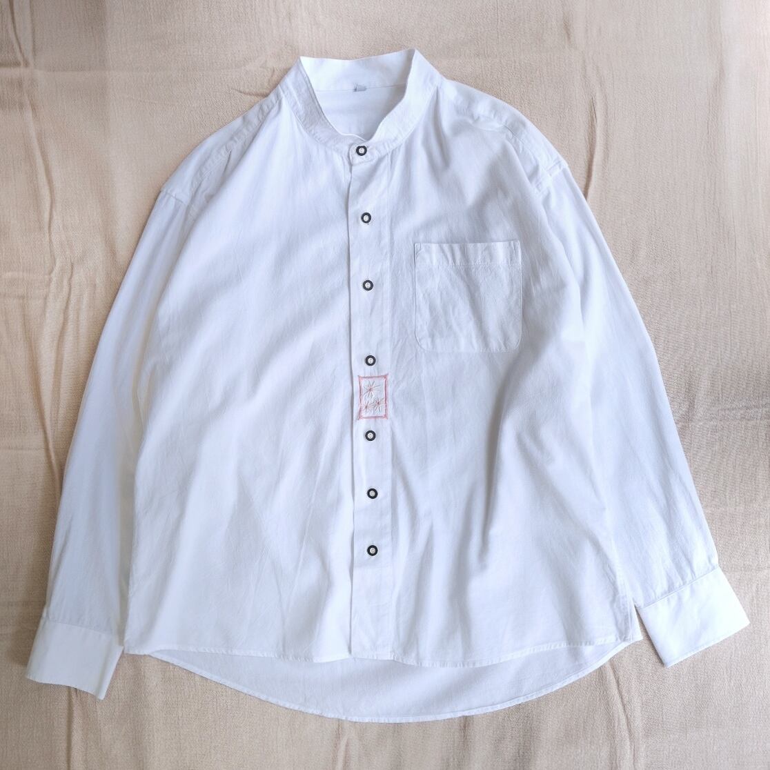 襟はこちらで外し、すっきりとしたバンドカラーに。