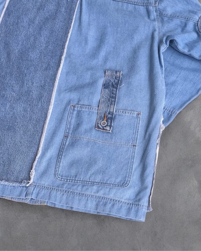 デニムパンツのデザインをジャケットに落とし込んだ、